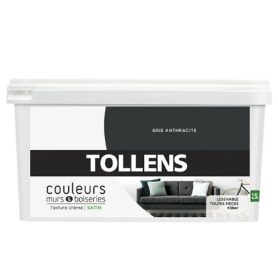 Peinture murs et boiseries Tollens gris anthracite satin 2,5L | Castorama