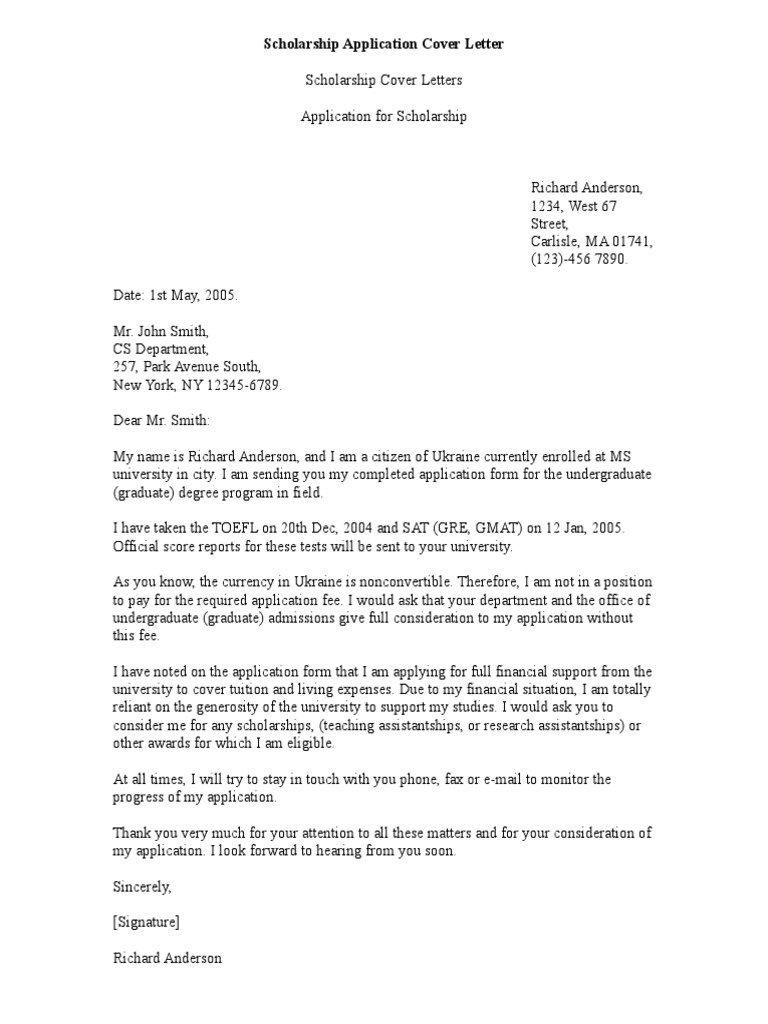 Cover Letter For Scholarship Application Template 20 Tips