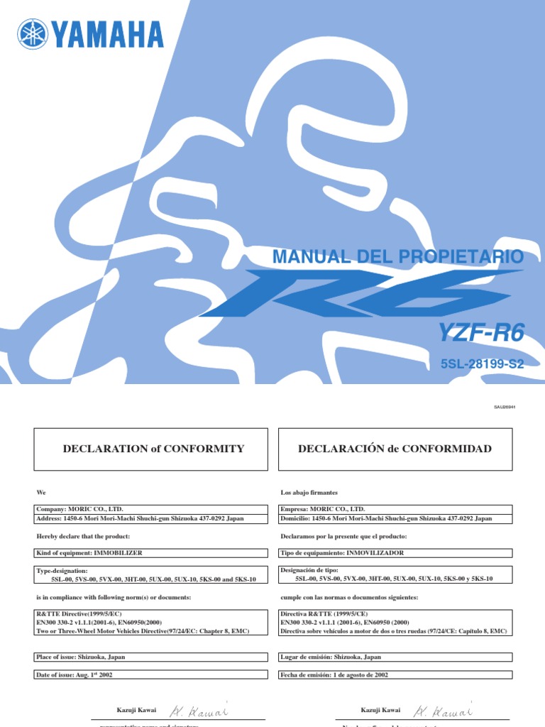 Yamaha yzf-r6 2006 manuale de empleo (in spanish) (104 pages). Yamaha r6 1999-2002 partes, yonekada... Yamaha r6 2002, the yzf-r6 has been revised several times since its